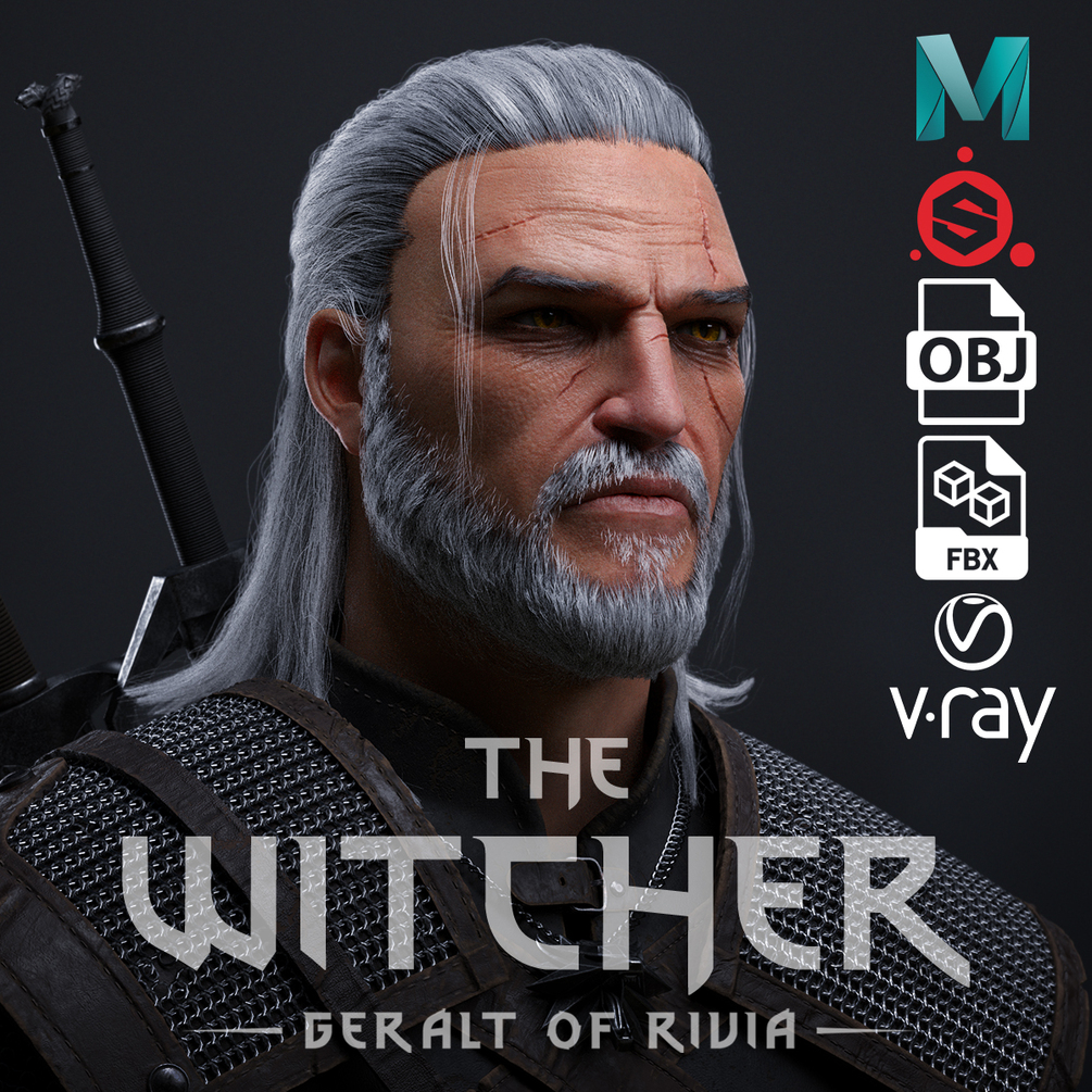 You have the Maya and Substance Painter files and the 3D model of the project Geralt of Rivia